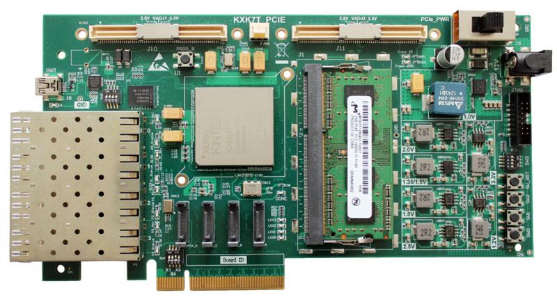 PCIe Gen2 x8 主机接口,提供采集卡与电脑间的高速传输带宽。